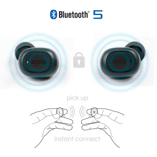 Boombuds GO are our pick-up & go-true wireless earbuds. Instant pair & connect without a touch of a button, thanks to the latest Bluetooth 5 which also allows a solid connection with no breakout & an amazing 5-hour long playtime on one charge.