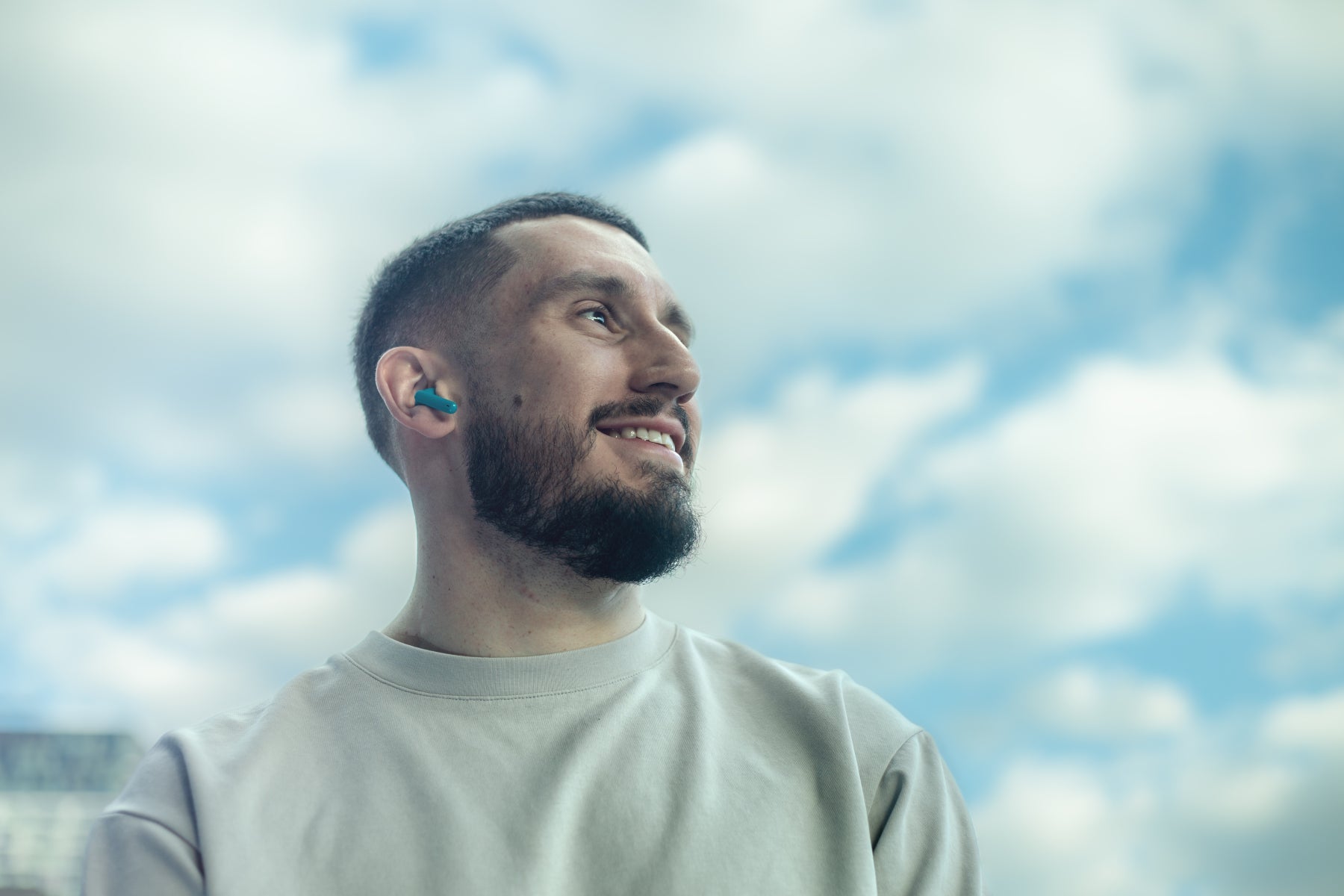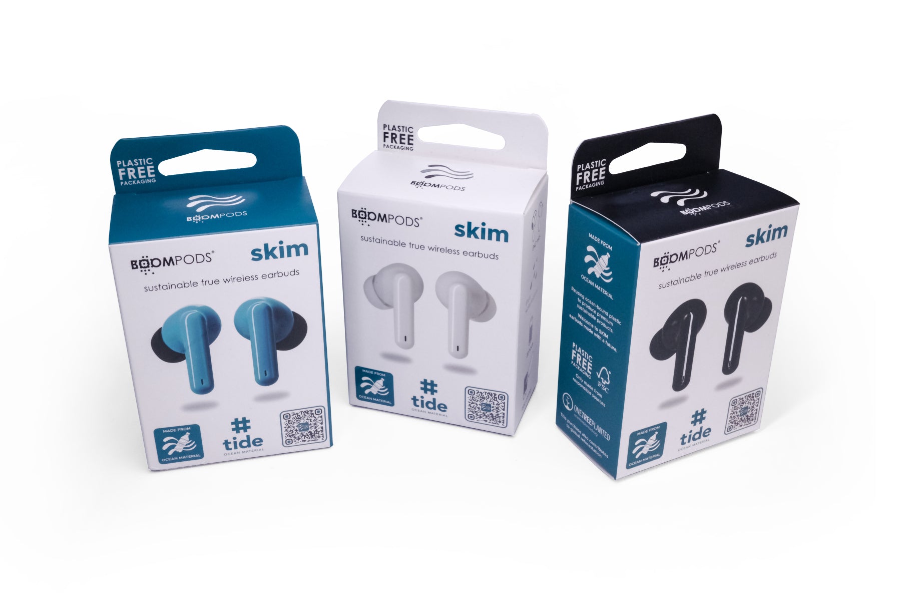 True wireless with great sound, secure fit and made from ocean bound plastic. SKIM deliver true wireless freedom and are built to last, water resistant, drop proof, stable connection & long battery life. The short stork design keeps it subtle, but positions the mics closer to the mouth for clearer phone calls.